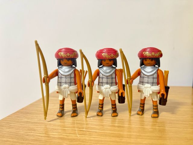 Detalles del productoConjunto de tres figuras de Playmobil representando arqueros árabes o sarracenos.