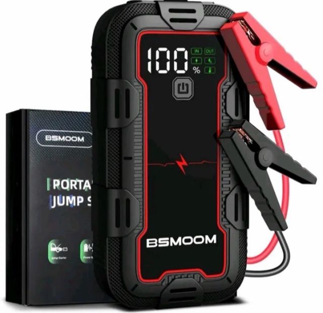 Detalles del productoArrancador de batería portátil BSMOOM B01 con pantalla digital.