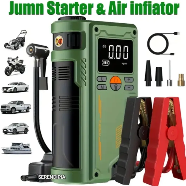ARRANCADOR DE COCHE Y COMPRESOR DE AIRE INALÁMBRICO, RECARGABLE.