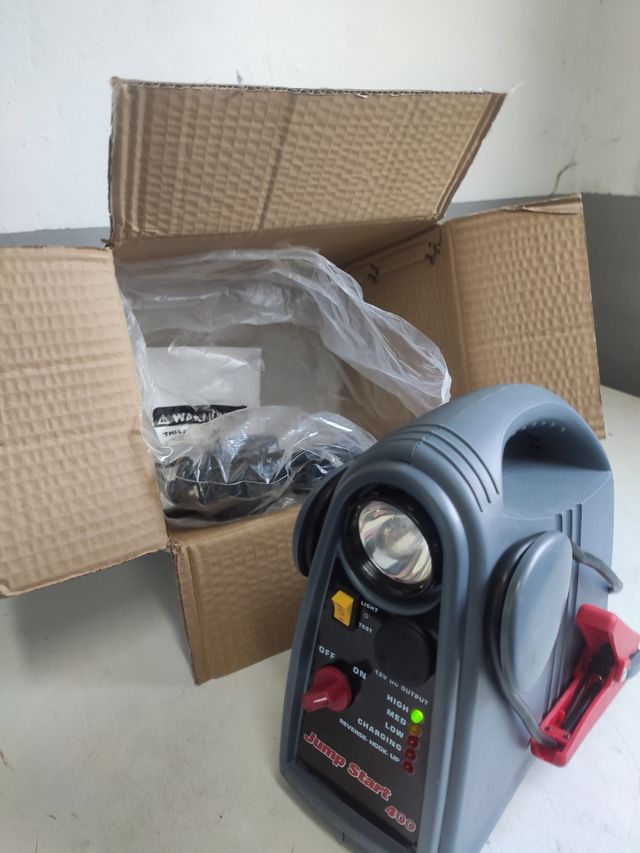 arrancador auxiliar con batería recién puesta, compré 2 sin batería y me quedé con uno