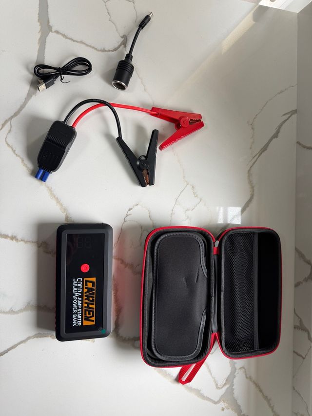 Detalles del productose vende Arrancador de baterias coche de 5000A nuevo sin estrenar.tiene para cargar móviles , una linterna y también toma de mechero. se hacen envios a toda españa. un saludo gracias
