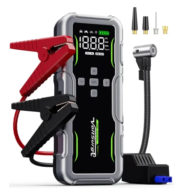 Powerbank de 7000A para Arranque de Coche con Compresor, 160 PSI, para Coches de Gasolina y Diésel de hasta 10L, Booster de 12V con Linterna LED
