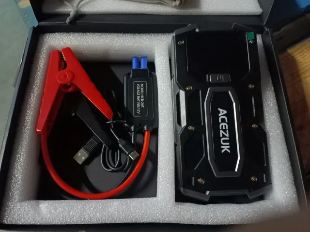 Arrancador de coche portátil de la marca . Incluye pinzas de conexión y cables. - Modelo HCB-2AT. - Voltaje nominal 12V.