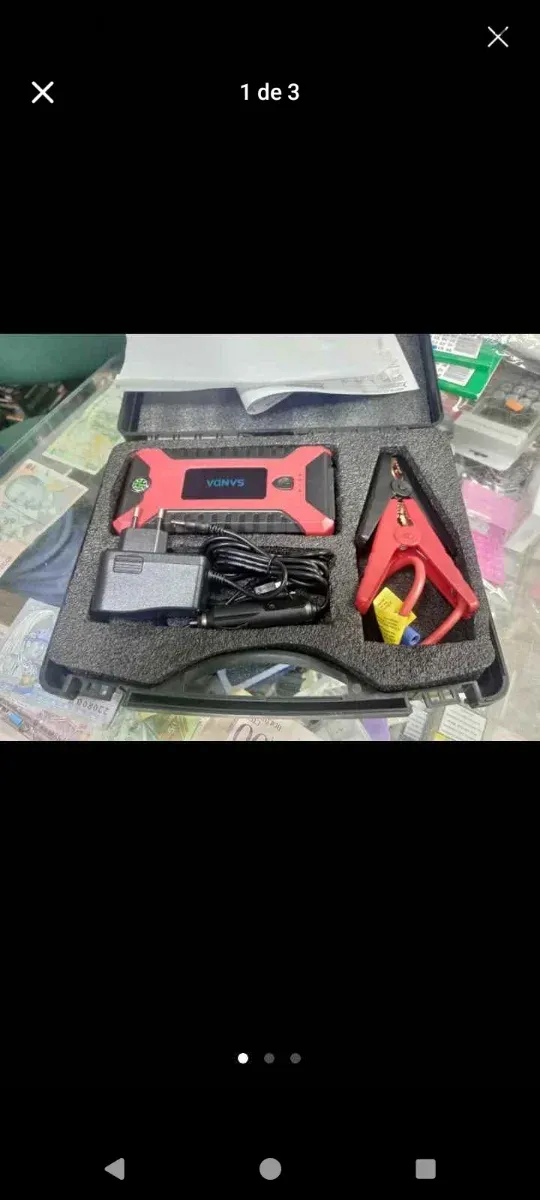 Detalles del productoArrancador de coches portátil con cargador y pinzas. 12 V