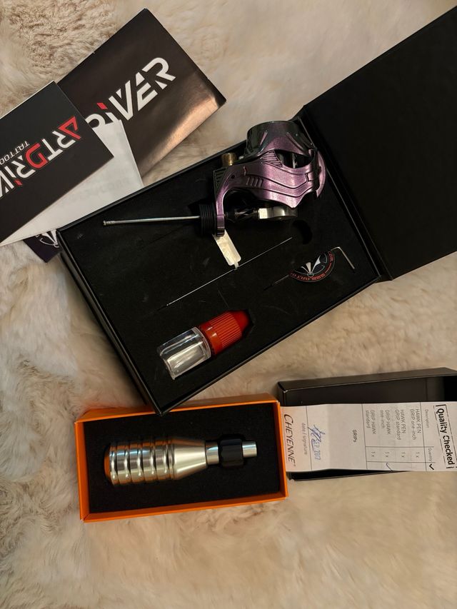• Máquina Art Driver F-Power (Edición New Galaxy): Rotativa española de primer nivel con motor Maxon. Es una máquina todoterreno, excelente tanto para líneas finas como para relleno y sombras. Muy silenciosa y sin apenas vibración. (Incluye caja original).