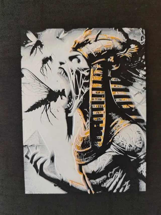 Detalles del producto"¡Despierta la maldición del faraón! 💀 Lámina impactante de un faraón terrorífico con enjambres de insectos. Un arte único que mezcla la historia egipcia con el horror más puro. ¡Ideal para amantes de lo macabro y lo diferente! 🕷️