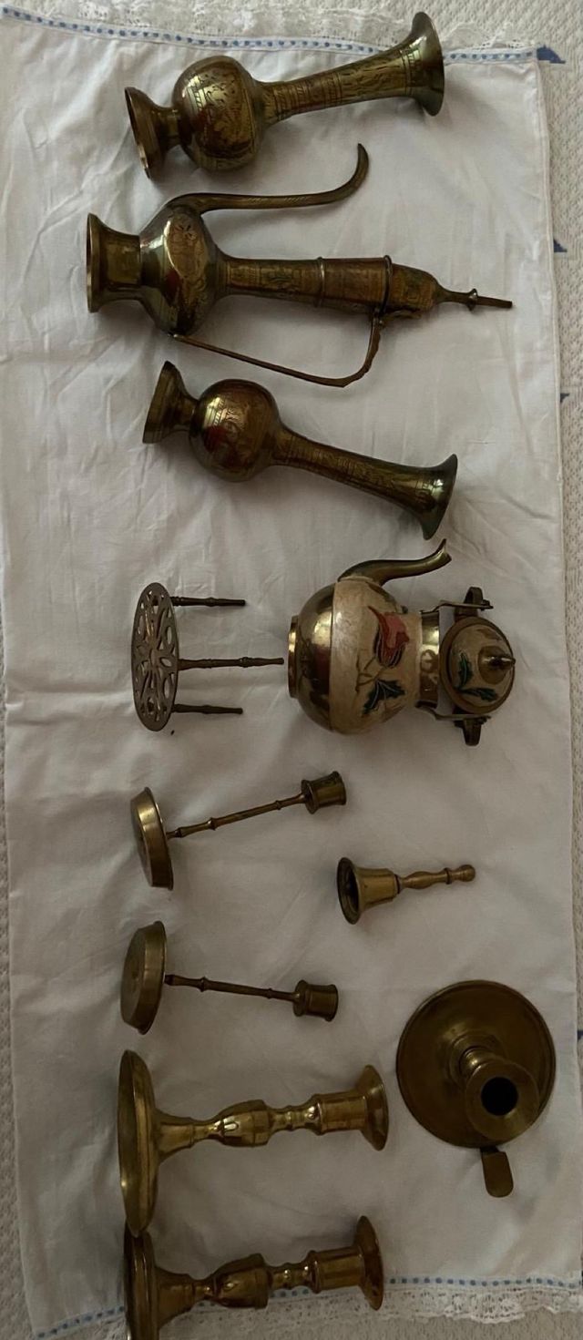 Detalles del productoConjunto de piezas de artesanía en bronce con un diseño intrincado.