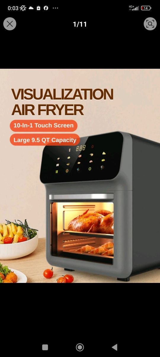 Freidora de aire,9'5 cuartos de galon, asistente multifuncion. (220/240V)