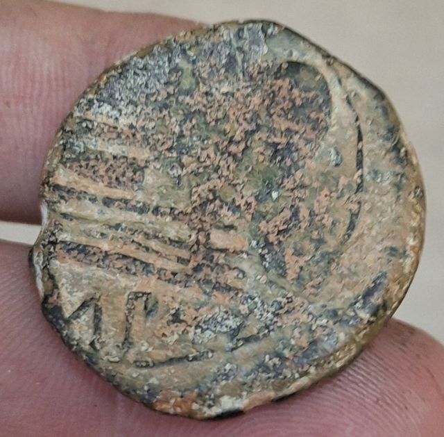 Detalles del productoMoneda antigua de bronce, un as de Gneo Pompeyo.