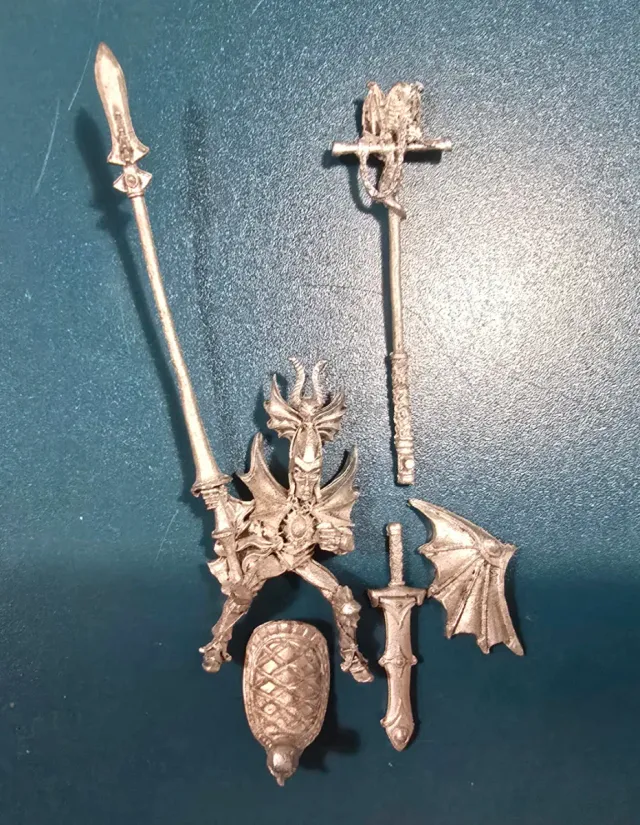 - Figura ultra rara de encontrar, diseñada en 1998 por Chris FitzPatrick para 5a edición de Warhammer Fantasy como jinetes de dragón mercenario, puede usarse en ejércitos elfos también