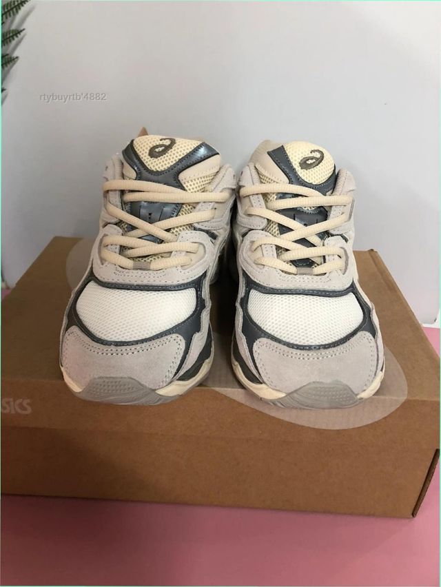 Zapatillas deportivas ASICS en tonos beige y gris. - Diseño moderno y cómodo. - Materiales de calidad.