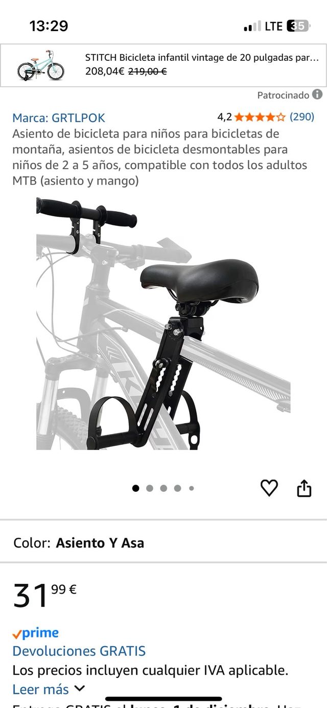 Asiento Bici Niños GRTLPOK