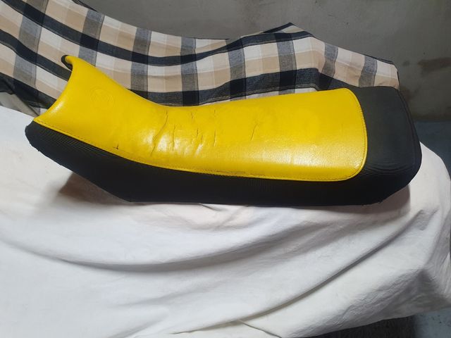 Detalles del productoAsiento "sillín" de moto Bultaco Lobito 50 el asiento tiene unas pequeñas grietas pero se llevó a reparar a un tapicero y para no perder el logotipo Bultaco se ha tapizado por dentro en la zona central y los laterales con Sky reforzado y por las esquinas que es por donde se empieza a romper se puede ver el refuerzo interno en las fotos zona esquinas muy difícil de encontrar para este modelo de moto no cambio solo vendo.