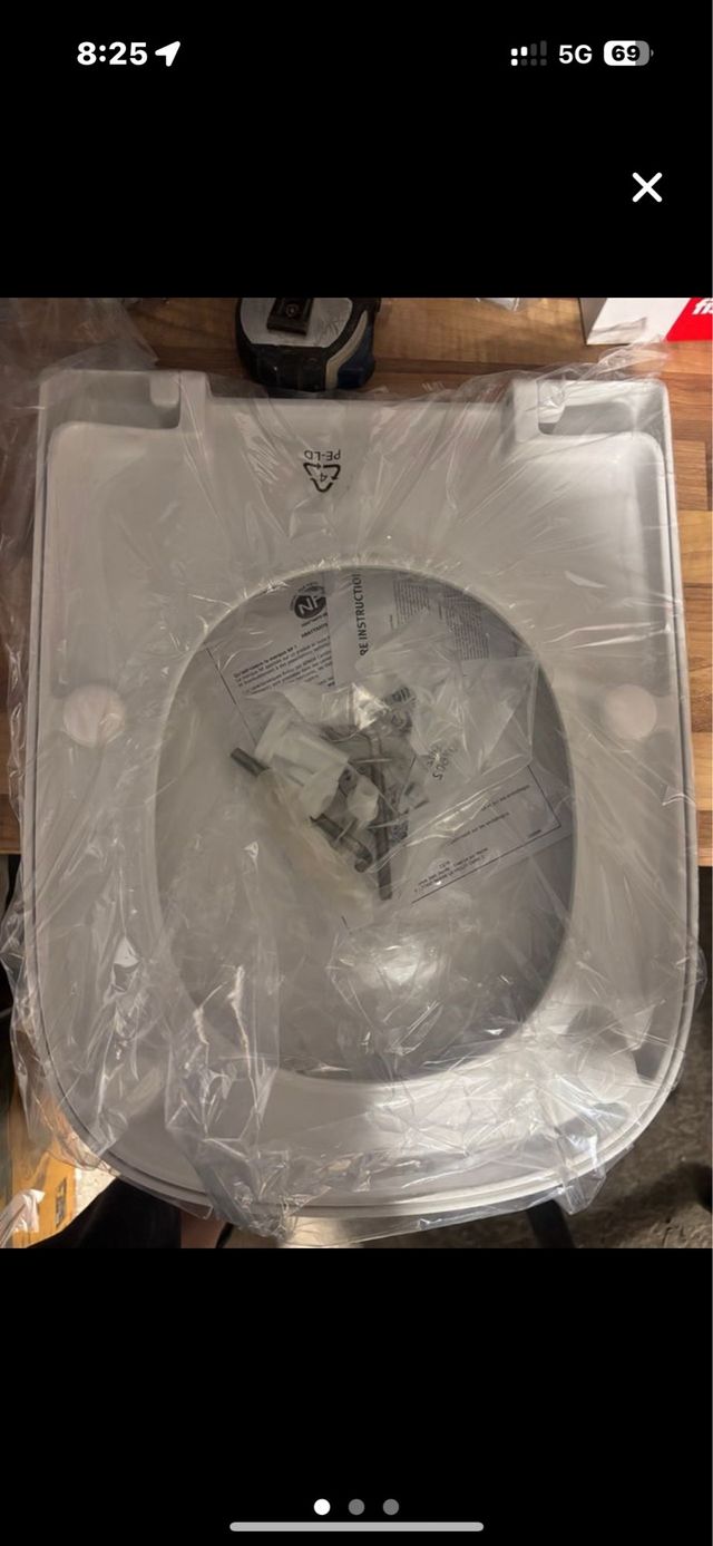 Asiento de inodoro nuevo, sin usar. Incluye todos los accesorios para su instalación. - Material: Plástico resistente. - Color: Blanco. - Diseño moderno y funcional.
