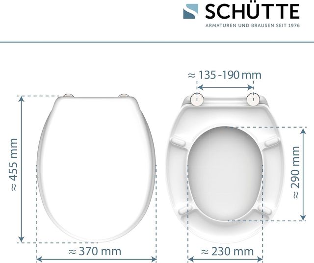 SCHÜTTE Asiento de inodoro sin descenso automático, tapa de inodoro con bisagras metálicas, Duroplástico resistente a los arañazos, tapa y asiento de inodoro con carga máxima de 150 kg, tamaño