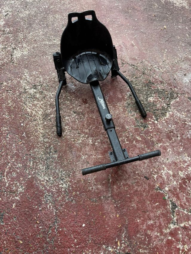 Este accesorio se acopla a tu hoverboard para convertirlo en un kart. - Asiento negro. - Estructura metálica. - Manillar para control.