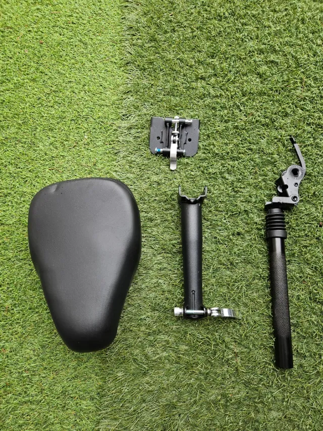 Conjunto de asiento y piezas para patinete eléctrico. ( Proviene de KUKIRIN ). - Asiento negro. - Soporte de asiento. - Mecanismo de ajuste.