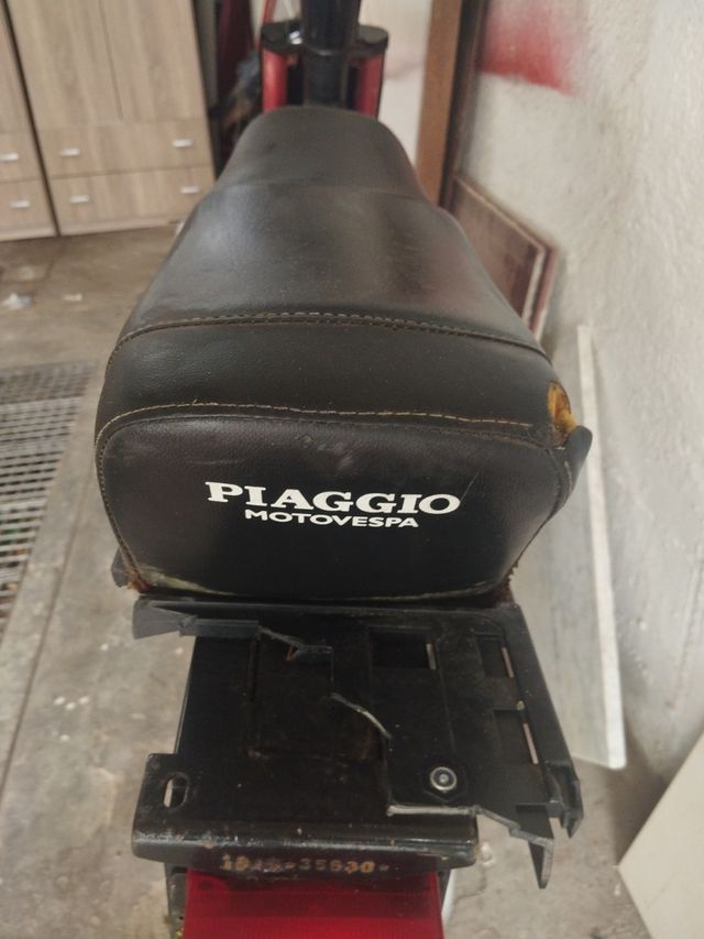Asiento de cuero negro para Piaggio Motovespa. - Logo de Piaggio Motovespa en blanco. - Costuras reforzadas.