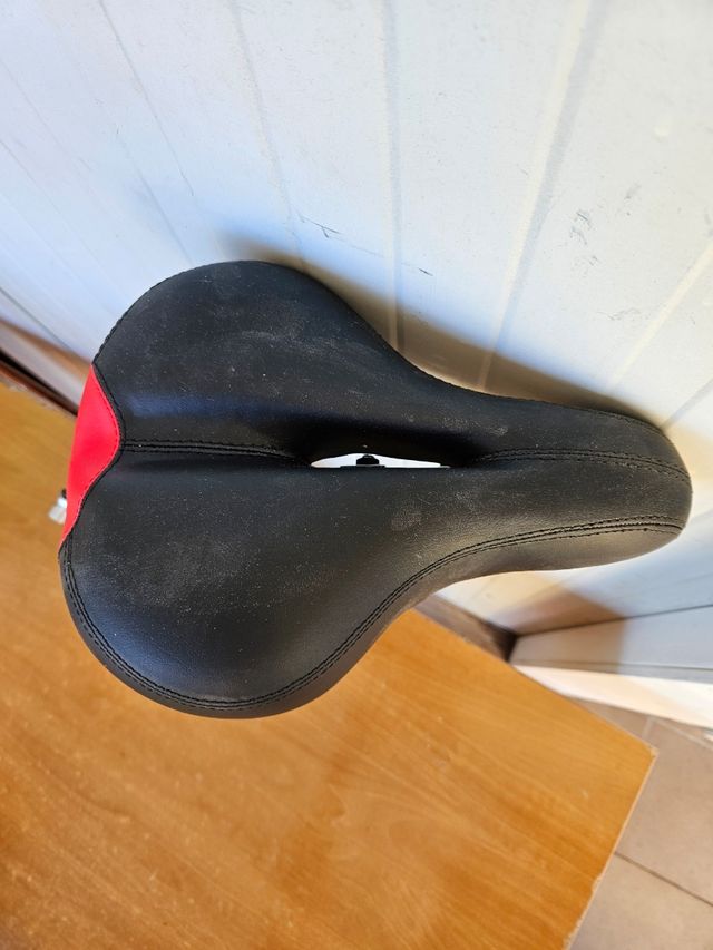 Asiento para patinete con un diseño moderno en negro y detalles rojos. - Cubierta de cuero sintético. - Acolchado para mayor comodidad. - Costuras reforzadas.