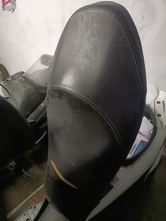 Asiento para Suzuki Burgman 125. Presenta un diseño clásico y cómodo. - Tapicería de cuero sintético. - Costuras reforzadas.