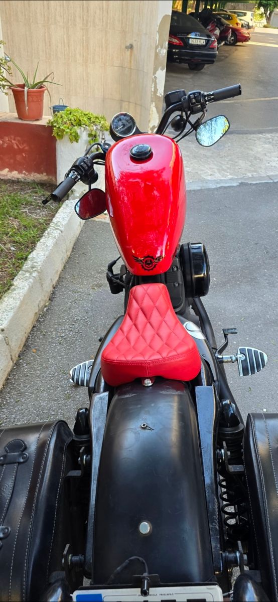 Detalles del productoPreciosa moto Harley Davidson. Incluye asiento y depósito. El depósito es de color rojo brillante y el asiento es rojo con un diseño de rombos. Ambos están en muy buen estado. - Asiento de cuero rojo con diseño de rombos. - Depósito de combustible rojo brillante.
