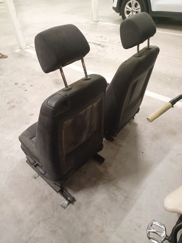Asientos delanteros de BMW 320 Compact. - Tapicería de tela negra. - Reposacabezas ajustables. - Rieles de ajuste incluidos.