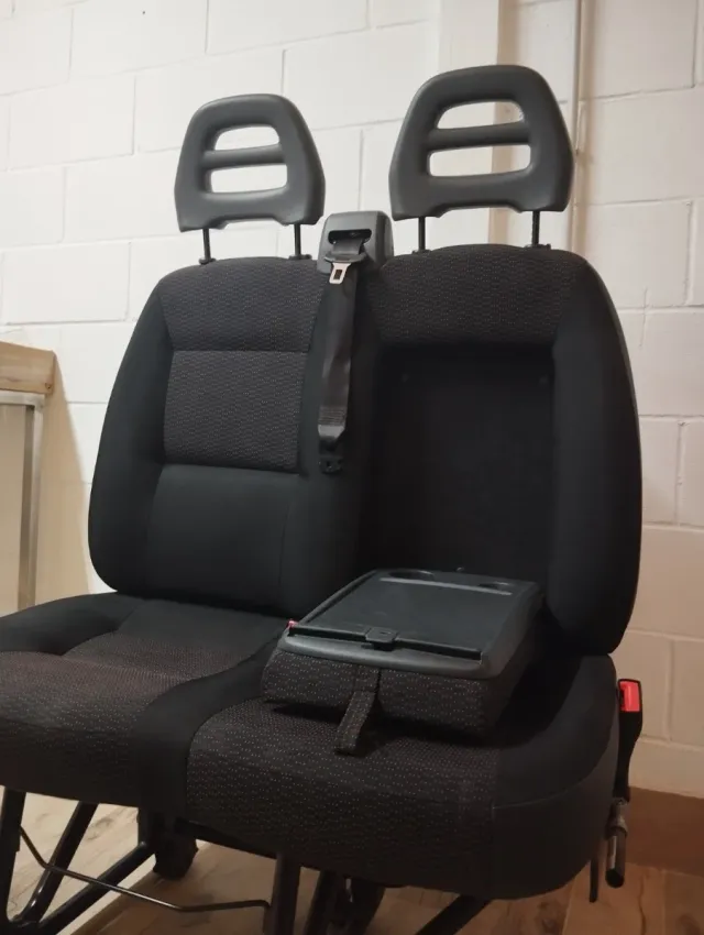 Detalles del productoConjunto de asientos delanteros dobles para Peugeot Boxer. Diseñados para ofrecer comodidad y funcionalidad.