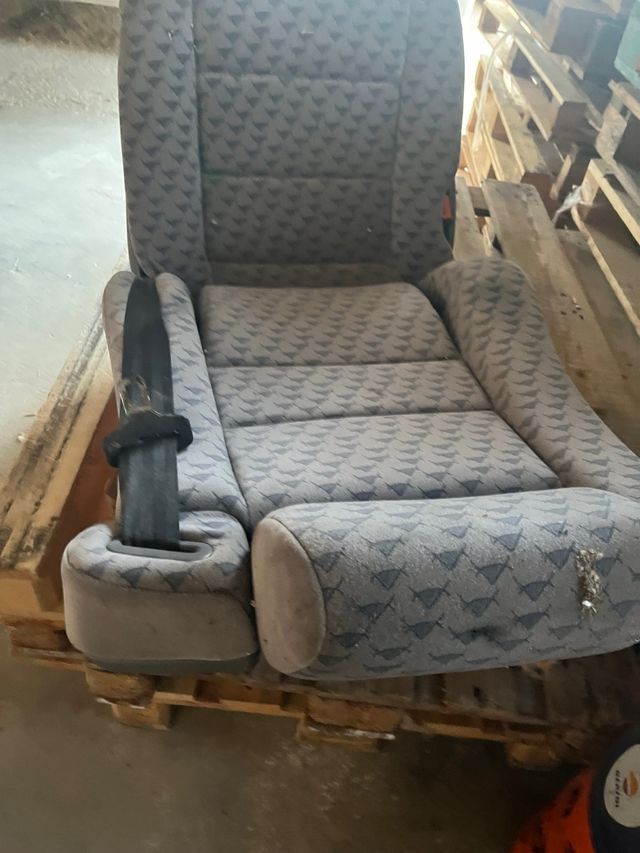 Asientos delanteros para Mercedes Vito W638. Tapicería gris con diseño geométrico. - Incluye cinturón de seguridad. - Reposabrazos. - Base de asiento.