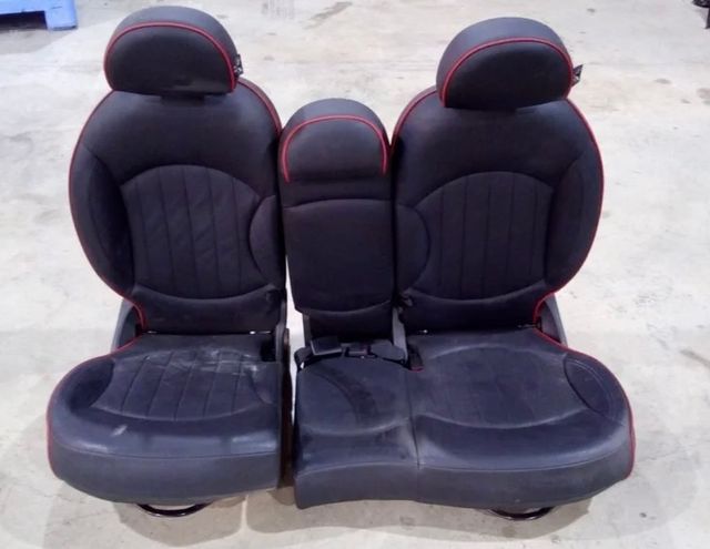 Detalles del productoConjunto de asientos delanteros y traseros para Mini Cooper Clubman. Tapicería negra con detalles en rojo.