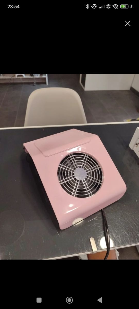 Detalles del productoExtractor de polvo para manicura de color rosa. Es compacto y fácil de usar.
