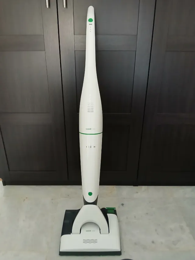 Detalles del productoAspirador vertical Kobold VB100 en color blanco.