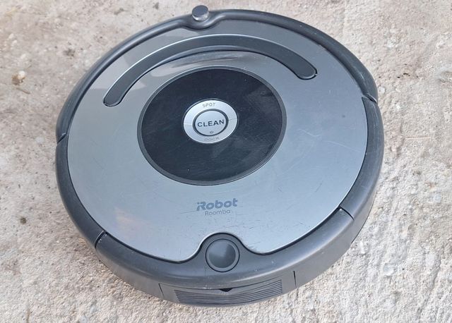 Aspirador robot Roomba 615, ideal para mantener tu hogar limpio. - Diseño redondo y compacto. - Botones de control en la parte superior.