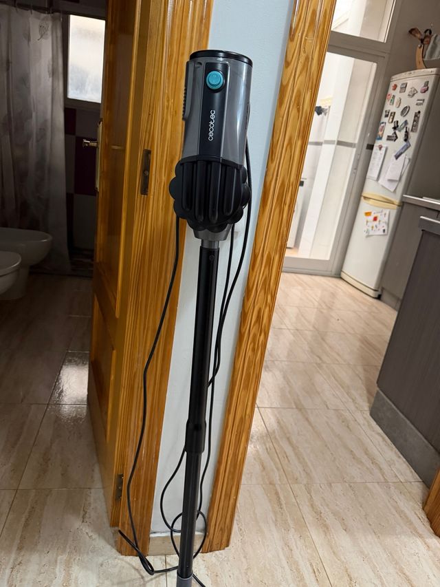 Aspiradora vertical de la marca Cecotec. Su diseño es moderno y funcional. - Color gris y negro. - Mango ergonómico. - Cable de alimentación.