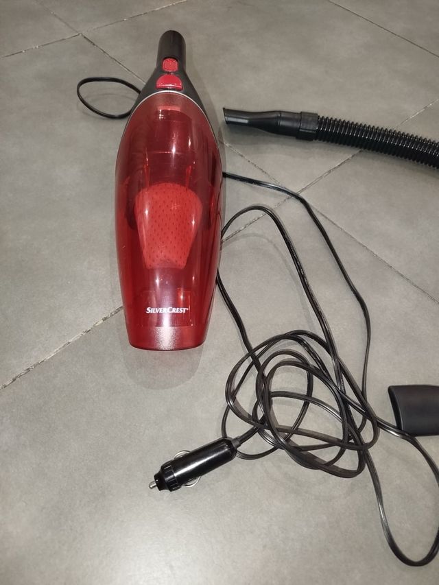 Detalles del productoAspiradora de coche SilverCrest, roja y negra, en perfecto estado.