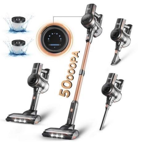 Detalles del productoAspiradora escoba de alta potencia con un diseño moderno y elegante.
