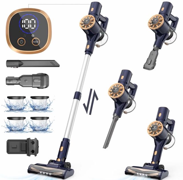 Display, 55Min Runtime, V-shaped Anti-tangle Brush, 6-in-1 Stick Vacuum,Multi-Surface Cleaning, 4 HEPA, for