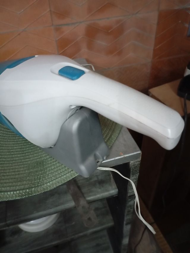 Aspiradora de mano en buen estado. Es compacta y fácil de usar. - Diseño ligero y portátil. - Color blanco y azul. - Ideal para limpieza rápida.