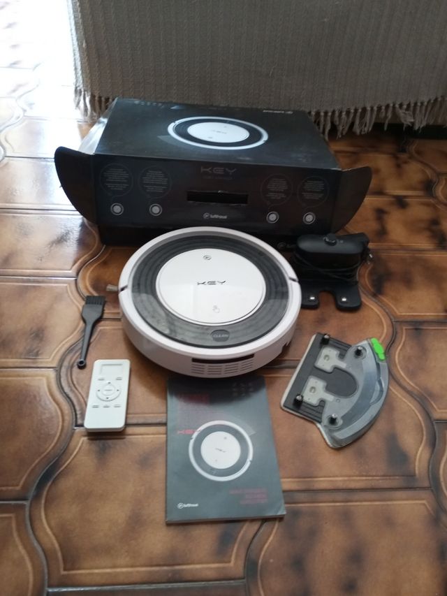 Detalles del productoAspiradora robot KEY, prácticamente nueva. Incluye todos los accesorios que se ven en las fotos: mando a distancia, cepillo, base de carga y manual de instrucciones. El robot aspirador está en perfecto estado.