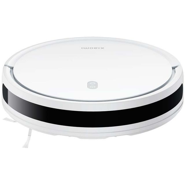 Aspiradora robot Xiaomi Vacuum E12 de color blanco con banda negra. - Diseño redondo y compacto. - Aspira y friega. - Con base de carga.