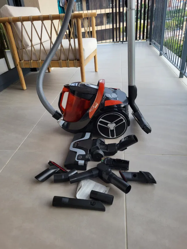 Detalles del productoRegalo aspiradora de trineo Rowenta en color rojo y negro, con varios accesorios.