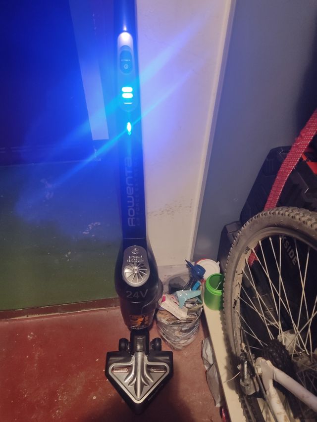 Aspiradora escoba Rowenta, en buen estado. - Modelo Rowenta 24V. - Color negro y plateado. - Diseño ligero y manejable.