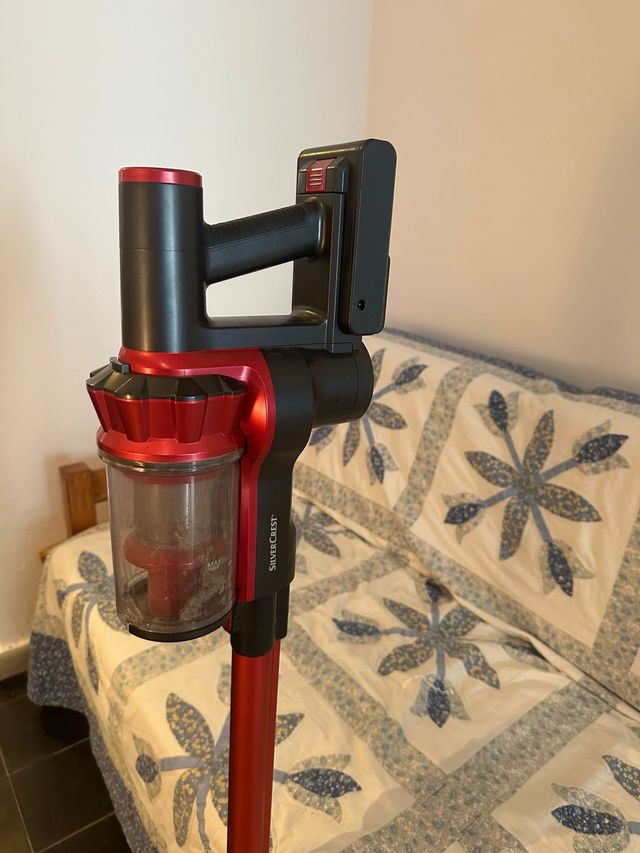Vendo aspiradora escoba SilverCrest en buen estado general. Tiene buena potencia y funciona perfectamente para limpiezas rápidas, suelos y rincones.
