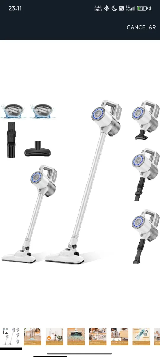 S6PRO,30kPa Potente Succión,Inalámbrica,Aspiradora Escoba sin Cable,Diseño Antienredos,Filtro HEPA,Aspirador Escoba Ideal para Suelo Duro y Pelo de Mascotas,Blanco