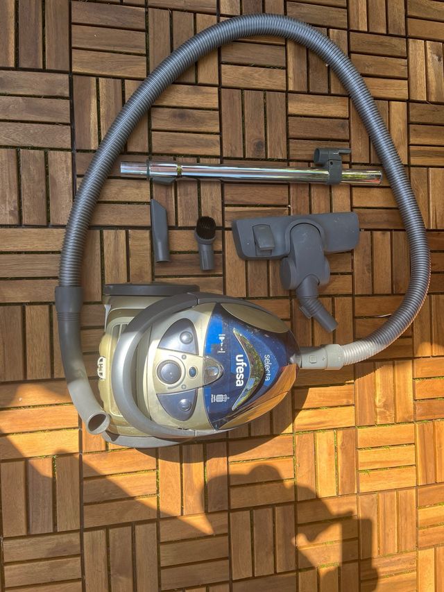 Detalles del productoAspiradora Ufesa en buenas condiciones. Se incluye la aspiradora, la manguera, la boquilla principal, un cepillo pequeño y una boquilla para rincones. Es una aspiradora con cable, ideal para una limpieza eficiente. - Aspiradora Ufesa en buen estado.