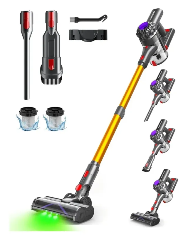 VACTechPro V15 Aspiradora sin Cable,35kPa Aspirador de Mano,6 en 1 Inalámbrica con 35minutos de autonomía y batería extraíble,Aspirador Escoba Ideal para Pelo de Mascota/Alfombra/Suelo Duro&Oro