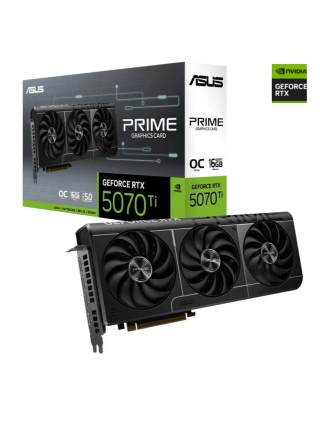 Detalles del productoTarjeta gráfica ASUS Prime GeForce RTX 5070 Ti con 16GB de memoria GDDR6X.