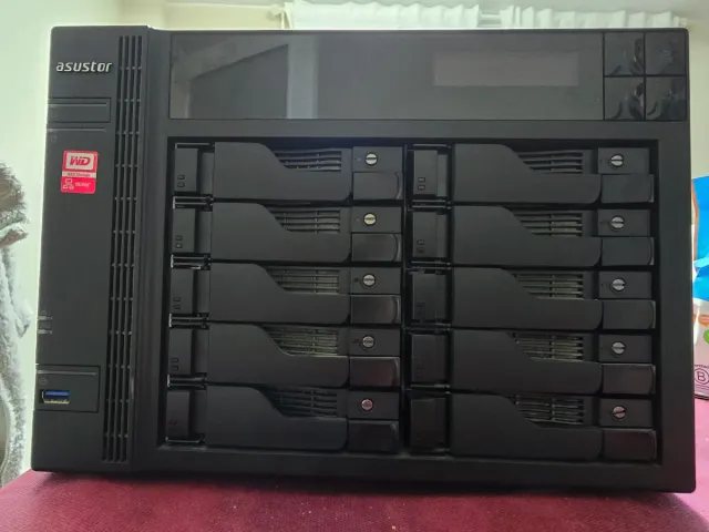 Detalles del productoDispositivo de almacenamiento en red ASUSTOR AS7010T con 10 bahías. Con 10 discos duros de 8tb. 80tb de almacenamiento. Puerto de red de 10gb. Puerto hdmi. Mando a diatancia.