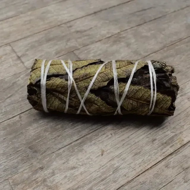 Atadito de yerba santa negra, ideal para rituales de limpieza y purificación. - Hojas secas de yerba santa negra. - Atado con hilo blanco.