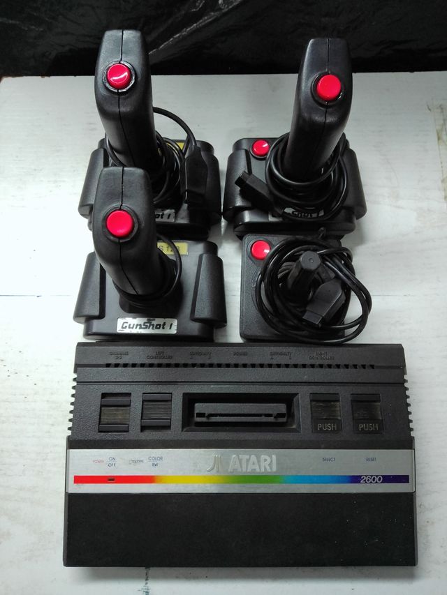 Atari 2600 con 4 mandos y 12 cartuchos