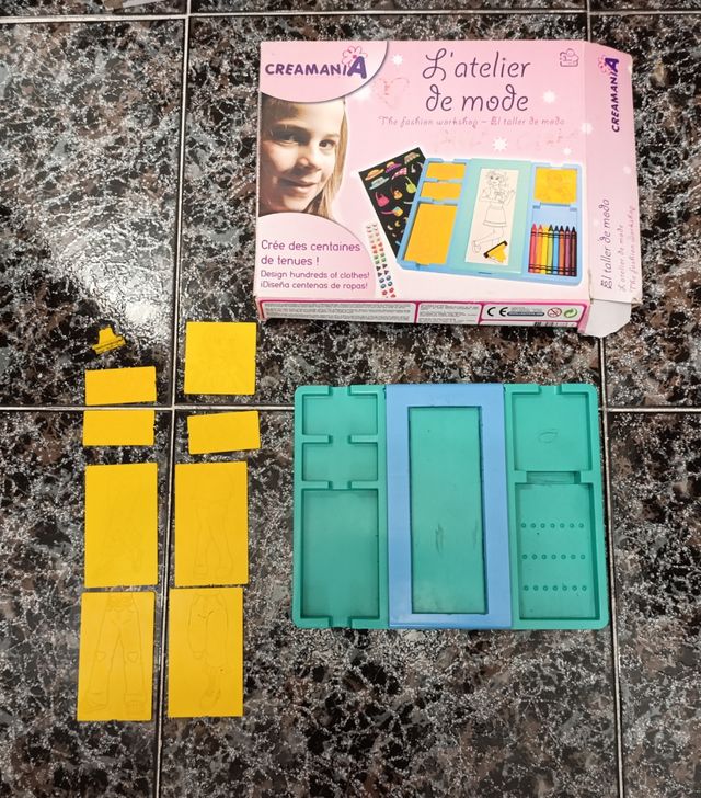 Detalles del productoJuego Creamania L'atelier de mode para diseñar ropa. Incluye una caja con plantillas, accesorios para crear diseños. Las piezas están en buen estado. . Plantillas para ropa. Perfecto para niños creativos.